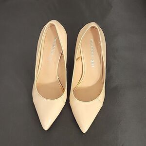 MADDEN GIRL HIGH HEEL STILETTOS POINTED TOE WOMEN"S PUMP SIZE 5M COLOR NUDE MADE WITH PU UPPER BALANCE MAN MADE MATERIALS HEEL HEIGHT MEASUREMENTS APPROX 3.75"INCHED THIS ITEMS IS PRE-OWNED EXCELLENT CONDITION WITH ONLY LIGHT SIGNS OF WEAR IF ANY CHECK THE PICTURES