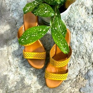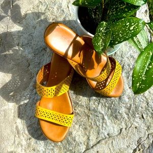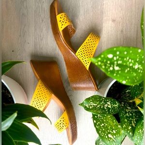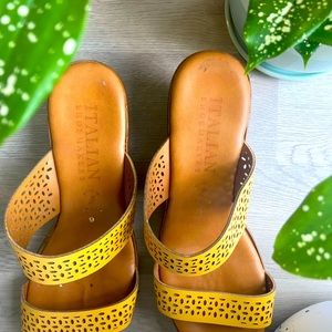 Beautiful Italian shoemaker🇮🇹 Yellow Wedge sandals with a Medium (2-3in) wedge, in brand new condition ✨