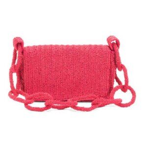 The Viral Beaded Made In India Raspberry Hot Pink Bag with chain link style strap is a stylish and eye-catching shoulder bag designed for women.