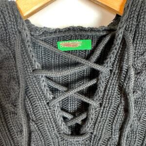 MADE IN ITALY OF BENETTON Pullover Hoodie Cropped Sweater Size Small Black