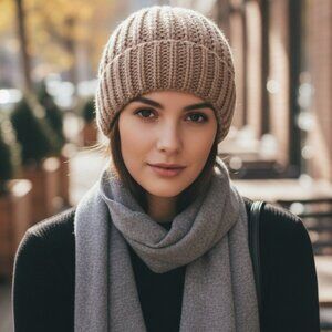 MADE IN ITALY Thick Chunky Crochet Slouchy Beanie Hat Tan Latte Wool Dreads Boho
