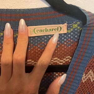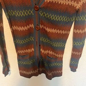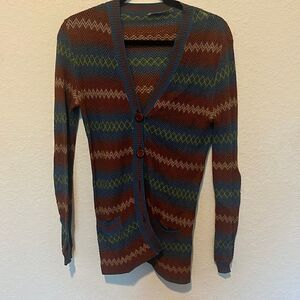 MADE IN Italy Knitted Button Up Sweater Cardigan Maroon Blue - Like New Size 3 - Size Small