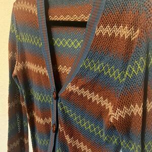 MADE IN Italy Knitted Button Up Sweater Cardigan Maroon Blue - Like New Size 3