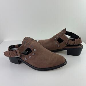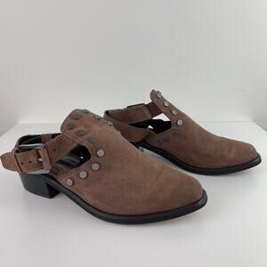 MADE Open Heel Brown Shoes Mules Studded Buckle Pointed Toe Leather Size 7.5