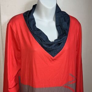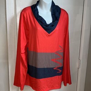 MADE WITH LOVE Coral, Navy and Grey Long Sleeve Top-XL NWT