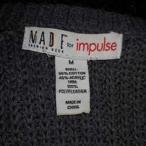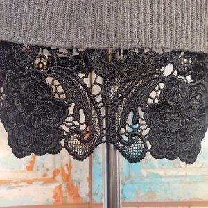 MADE for impulse long sleeve crew neck sweater dress w lace trim/size M/grey blk