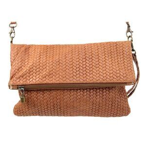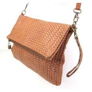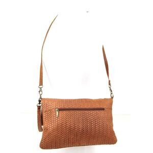 MADE IN ITALY TOOLED TAN BROWN GENUINE LEATHER X-BODY CLUTCH SHOULDER BAG PURSE WRISTLET
