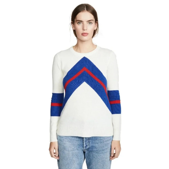 MADELEINE THOMPSON Timothy Cashmere Sweater In Cream Blue Red Size medium