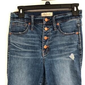 MADEWELL 10" High-Rise Skinny Jeans Raw Hem Button Fly 27 H6319 Distressed Rips