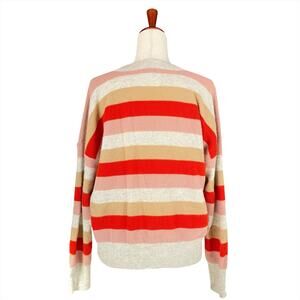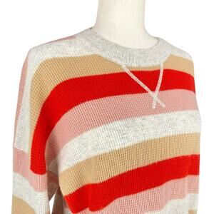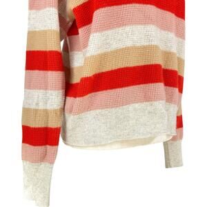 MADEWELL 100% Cashmere Waffle Knit Sweater in Norman Stripe L Tan Pink Red Grey