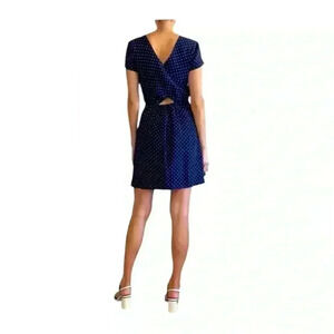 MADEWELL 1937 navy blue and cream star dress; women's size 0 (approximate pit2pit 17" / length from waist on down 19”)