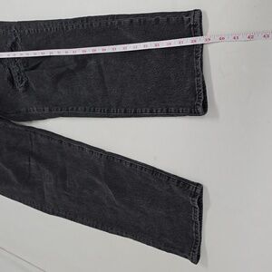 9 1/2" mid rise, fitted through hip and thigh, 15" tapered leg opening, 29" inseam.