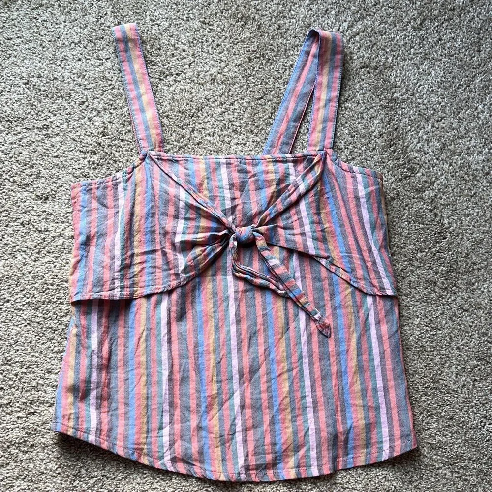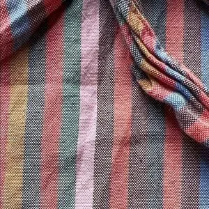 MADEWELL stylish women's top features a vibrant striped pattern, perfect for adding a pop of color to your wardrobe. The multicolor design includes shades of pink, blue, and orange, making it versatile for any occasion.