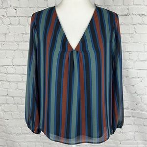 MADEWELL 70’s Vibe V-Neck Top with vertical Striping. Size XS