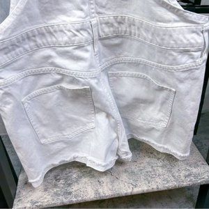 Bib overalls meet jean shorts in this warm-weather version of our favorite one-piece. Soft-to-the-touch white denim, frayed hems and tonal stitching give these shortalls that had-them-since-high-school look.