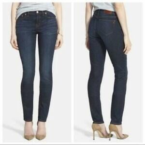 Straight-leg slim jeans feature an elongated inseam that pools at the ankles for a laid-back finish. Whiskered hips and hand-sanding to the knees enhance the rich indigo wash for a look that captivates day or night.