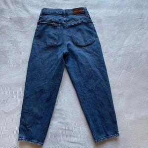 high-waisted, balloon-leg, medium wash, cropped fit, vintage-inspired, cotton denim, tapered jeans, effortless style, casual denim, structured fit
