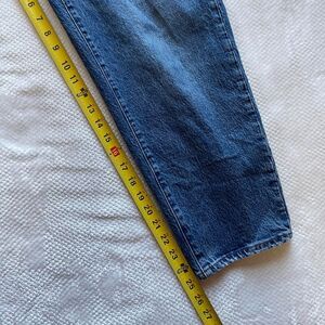 🍯 - High-waisted balloon-leg jeans in a classic medium blue wash, structured 100% cotton denim, cropped tapered fit with ~25” inseam (shown in photos), perfect for that effortless vintage-inspired look