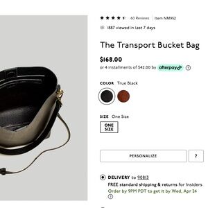 MADEWELL BLACK PEBBLED LEATHER TRANSPORT BUCKET BAG #0316