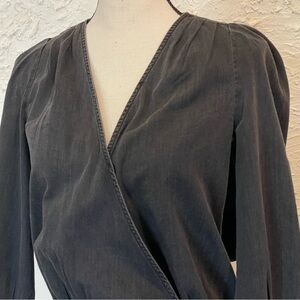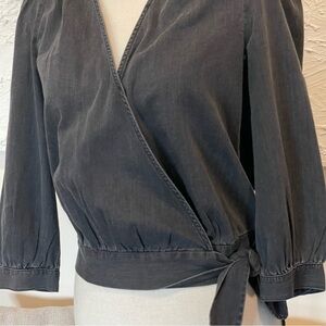 MADEWELL BLACK WASH DENIM WRAP TOP Cotton Sz XS NWT $78.