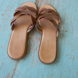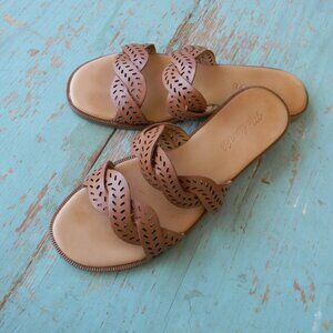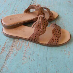 MADEWELL BROWN LEATHER PERFORATED CRISS-CROSS SANDALS SZ 6