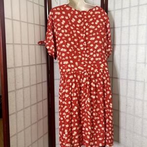 MADEWELL BUTTON FRONT TIE SLEEVE RETRO DRESS HAPPY HIBISCUS SIZE 12