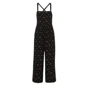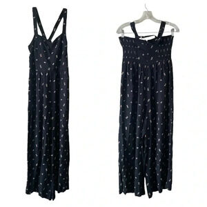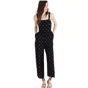 MADEWELL | Black Cottagecore Toss Smocked Cropped Wide Leg Jumpsuit Size 2