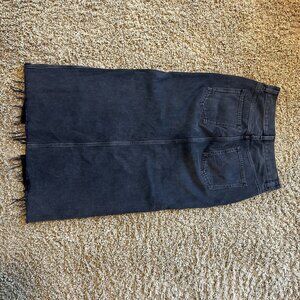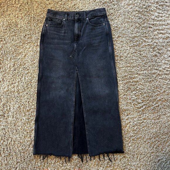 MADEWELL Black Denim Skirt with Long Slit Down the Front Raw Hem Size 25