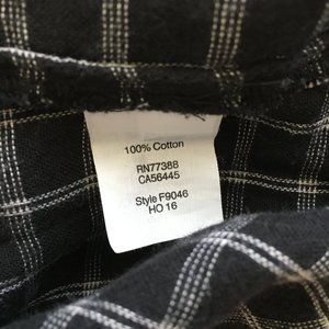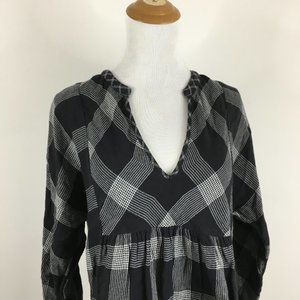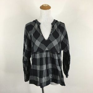 MADEWELL Black Gray/White'ish Plaid Checks VNeck Dolman Sleeve 2Ply Fabric Shirt