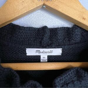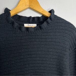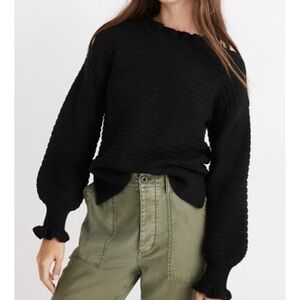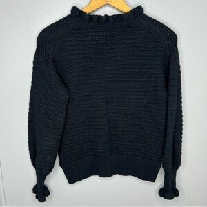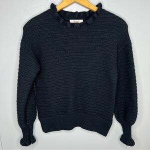 Madewell Black Knit Ruffle Neck Sweater. Cinched Sleeve Details. Excellent Condition. No Flaws. Size XS. Bust-17” Length-21”