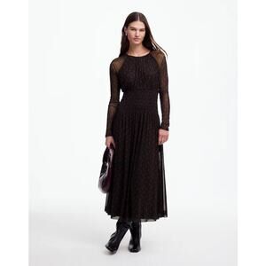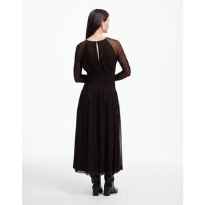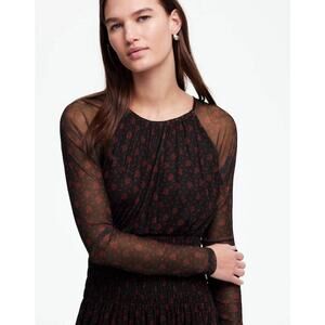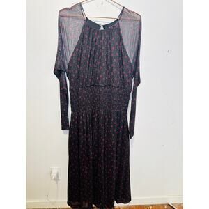 MADEWELL Black Red Smocked Midi Floral Print Sheer Lined Dress size XXL