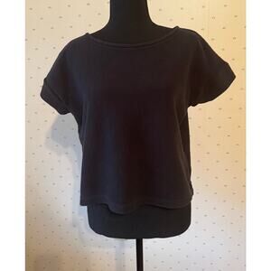MADEWELL Black Twill Jacquard Boxy Crop 100% Cotton T-Shirt Size Small