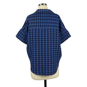 MADEWELL Blue Double Faced Park Popover Split Neck Top Cotton Blouse Size Small
