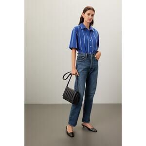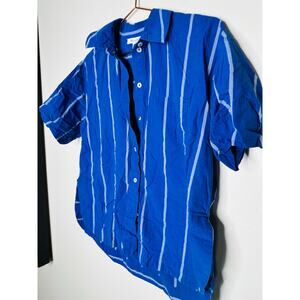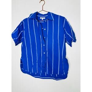 MADEWELL Blue Striped Boxy Cotton Button Up Collared Neckline Shirt Size Small