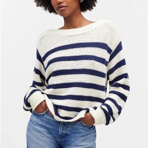 MADEWELL Boatneck Sweater Women XS Blue Stripe Pullover NEW Relaxed NQ340