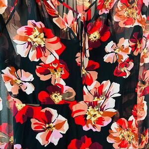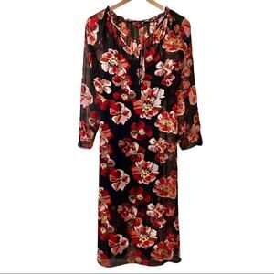 MADEWELL Bohemian Black & Red Floral Rose Summer Dress – Medium