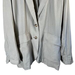 MADEWELL Breezewoven Larsen Linen Blazer and Pant Suit Set. "Ashen Sage" - pale green color. Do Well: made with Lenzing Ecovero, a sustainable fabric created with natural fibers and a more eco-friendly process.