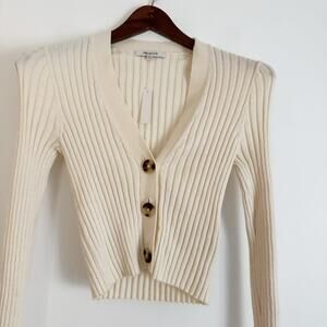 MADEWELL Brenville Crop Cardigan Sweater Antique Cream Ivory XS NC687