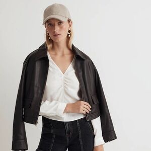 MADEWELL Brushed Ruched Front Blouse In Lighthouse NWT
