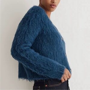 MADEWELL Brushed V Neck Cardigan Sweater Blue Button Front Relaxed Fit Sz XS