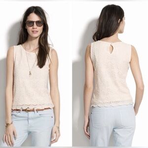 EXCELLENT CONDITION J CREW BRAND MADEWELL CROCHET SCALLOP EDGE TANK TOP IN NAVY! Super soft material. Comes from a pet-free, smoke-free, climate controlled environment.