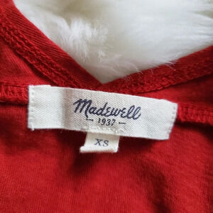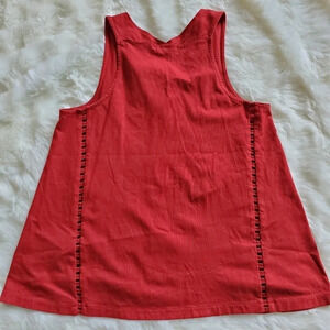 Madewell sleeveless top sz XS, worn once and is in excellent condition. No holes, rips, stains or tears. Dark red in color, v-neck, vertical stripes with cutout detail and flares out slightly. 100% cotton.