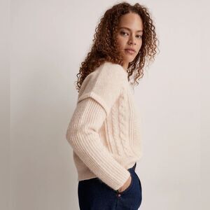 MADEWELL Cable Knit Havener Sweater XS Heather Beige Alpaca Wool Neutral Minimal
