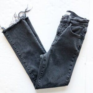 MADEWELL Cali Demi Boot Bayland Wash Raw Hem Black Ankle Jeans Womens 26