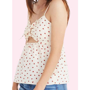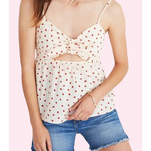 MADEWELL Cami Top Baby Doll Cut Out TIE Strawberry Print sz 4 NWT