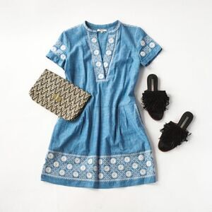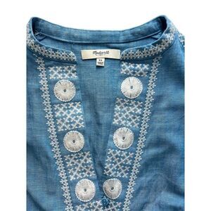 MADEWELL Chambray Sunstitch Tunic Dress Blue White Embroidered BOHO Womens XS