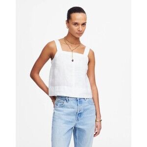 MADEWELL Contrast-Stitch Squareneck Top 100% Linen XS Salt White Tank NWT B80