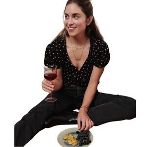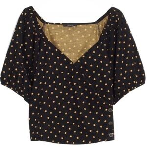 MADEWELL Corduroy Puff-Sleeve Wrap Top in Oval Dot Size S