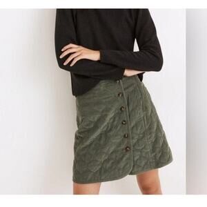 MADEWELL Corduroy Quilted Mini Wrap Skirt Sage Green A-Line Button | 10