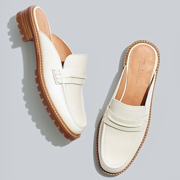 MADEWELL Corrine Leather Lug Sole Loafer Mules in Oyster